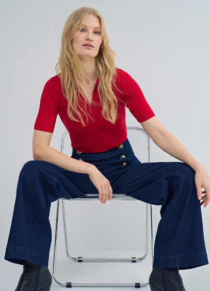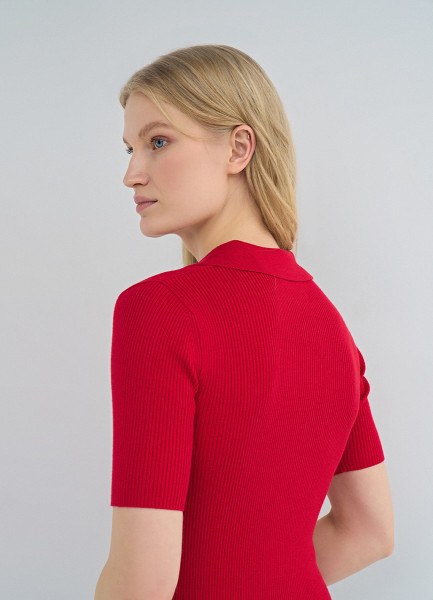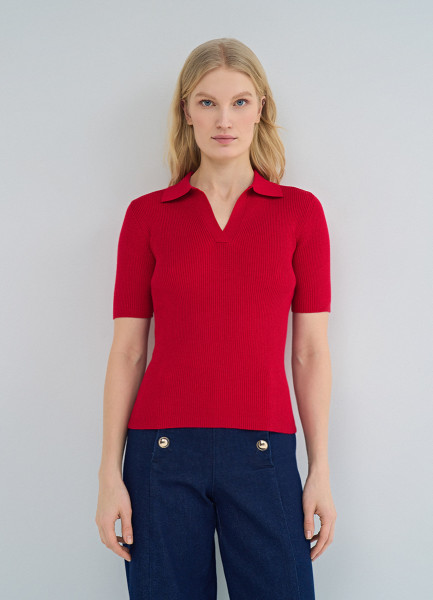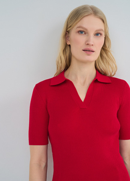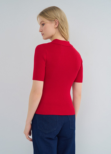 Джемпер поло в рубчик, Красный