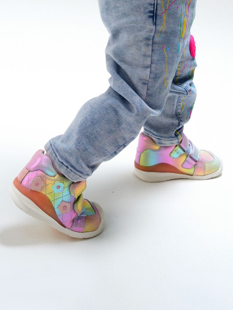 Кроссовки из искусственной перламутровой кожи. В модели использованы BIO-FIT технологии для правильного формирования стопы ребенка: стабилизация, дышащий антибактериальный материал для стельки, ходовая часть подошвы с амортизирующими элементами. Подкладка выполнены из 100% хлопка. Модель имеет две застежки липучки для удобства обувания. Съемная кожаная профилированная стелька с анатомической формой способствует равномерному распределению давления и препятствует развитию плоскостопия. Материал подошвы парфюмирован запахом жевательной резинки.