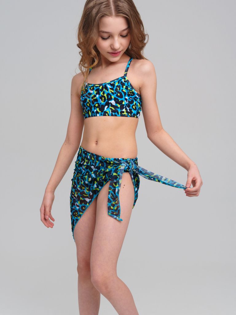Набор для девочки подростка. Купальник раздельный для девочки подростка. Купальник для пляжа и бассейна выполнен из быстросохнущего материала. Благодаря хлор-защите и UF-защите ткань сохраняет первоначальный вид даже при длительном пребывании на солнце. Парео.