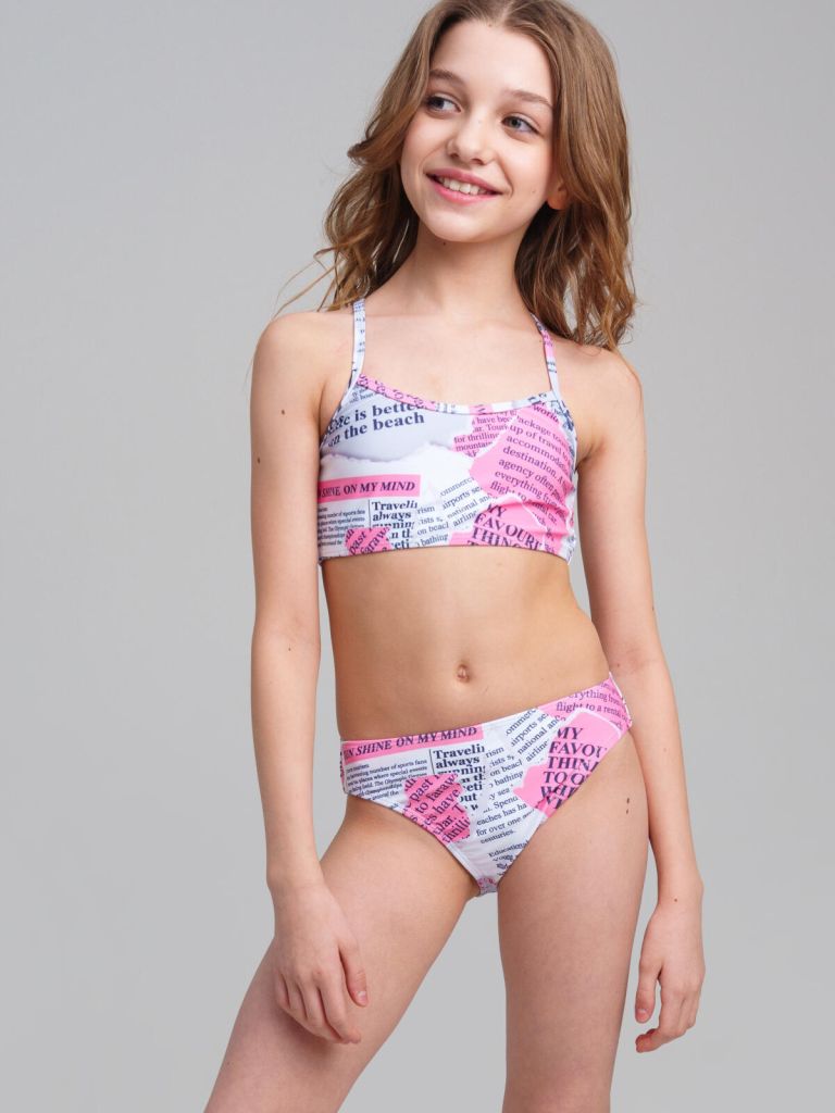Купальник раздельный для девочки подростка. Купальник для пляжа и бассейна выполнен из быстросохнущего материала. Благодаря хлор-защите и UF-защите ткань сохраняет первоначальный вид даже при длительном пребывании на солнце. Регулируемые бретели.