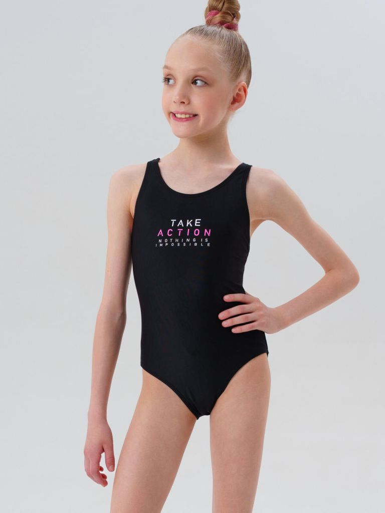 Слитный черный купальник для бассейна для девочки-подростка от PlayToday — идеальный выбор для тренировок и активного плавания!