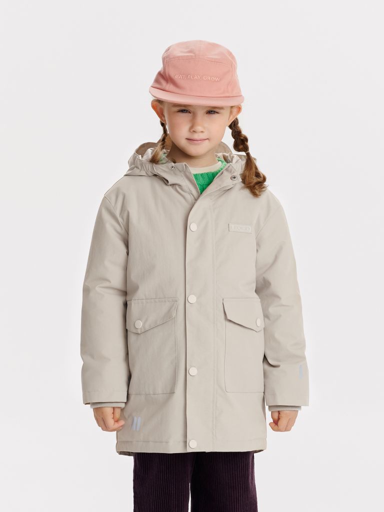 Имеет слегка удлиненный силуэт, ткань с водоотталкивающей пропиткой, легкий утеплитель 80 г/м², накладные карманы, ветрозащитную планку, защиту от защемления подбородка и светоотражающие элементы для безопасности в темное время суток.