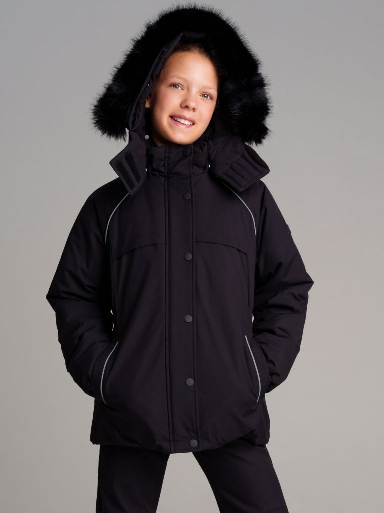 съемный капюшон с адаптацией по ширине резинкой; съемная опушка