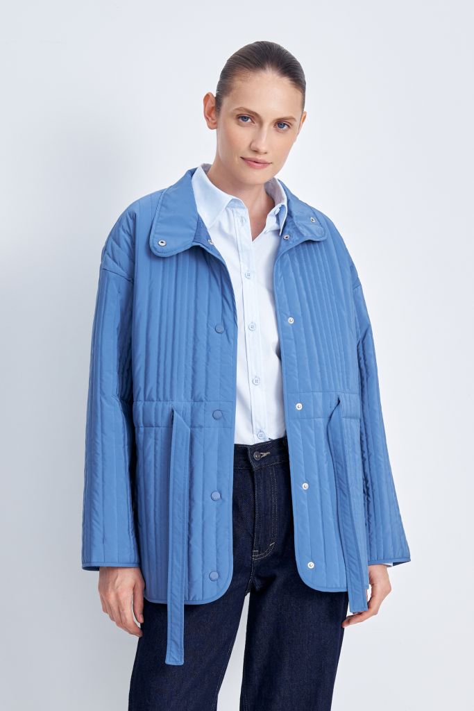 Утепленная куртка на кулиске с воротником-стойкой