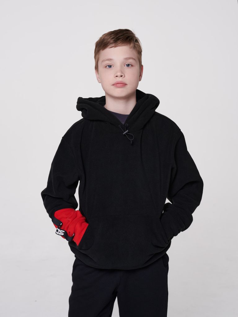 Флисовая куртка для юношей с вместительным карманом на груди. Куртку можно носить самостоятельно или в качестве поддевы.