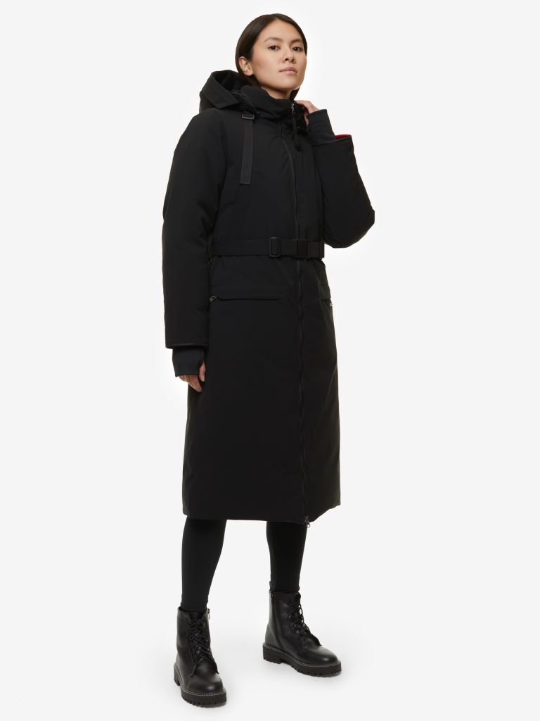 Теплое зимнее пальто с поясом и кокеткой. Благодаря мембранной верхней ткани пальто защищает от осадков и ветра. Натуральный пух бережно и без утяжеления сохраняет тепло в серьезные морозы.