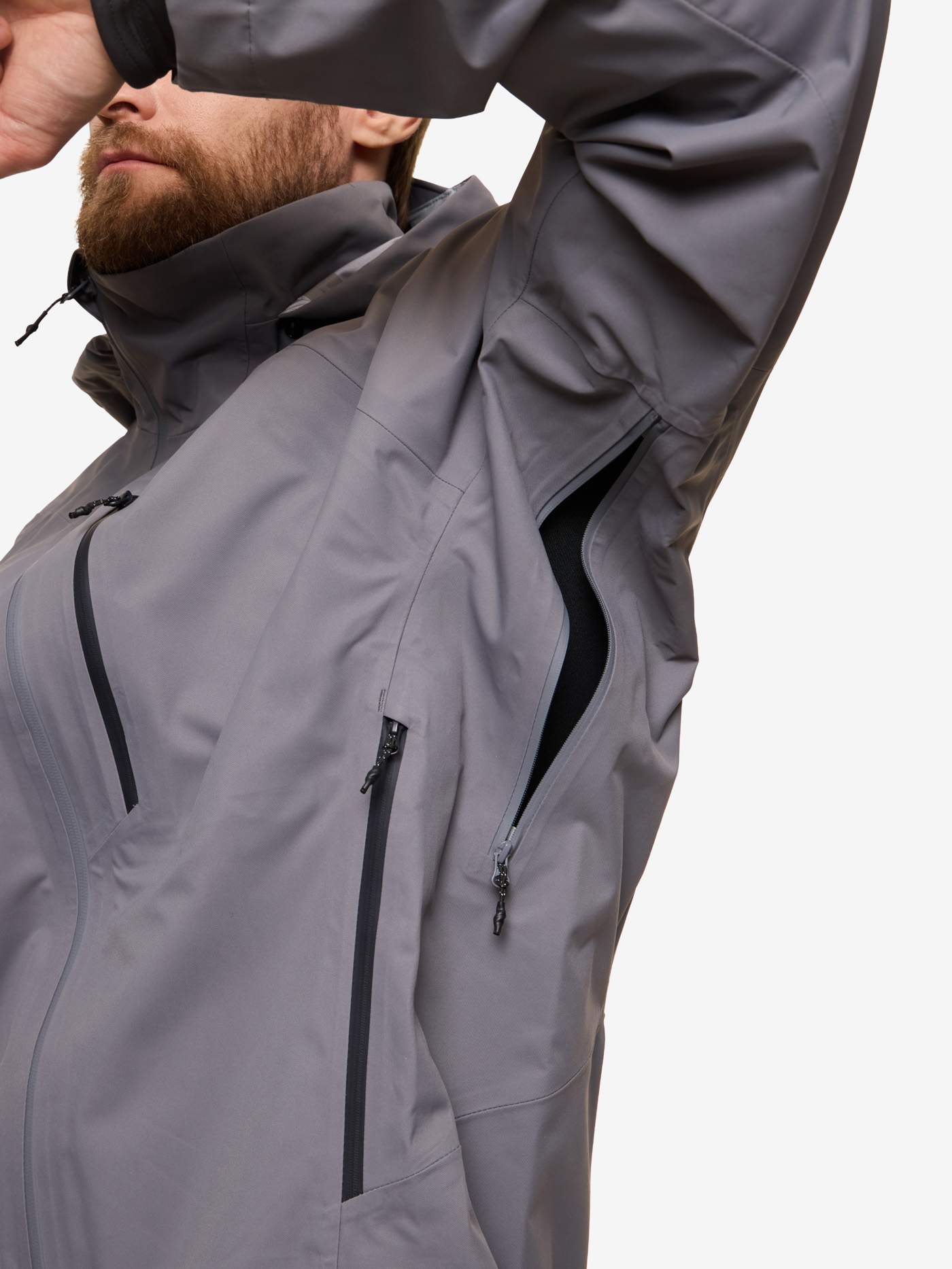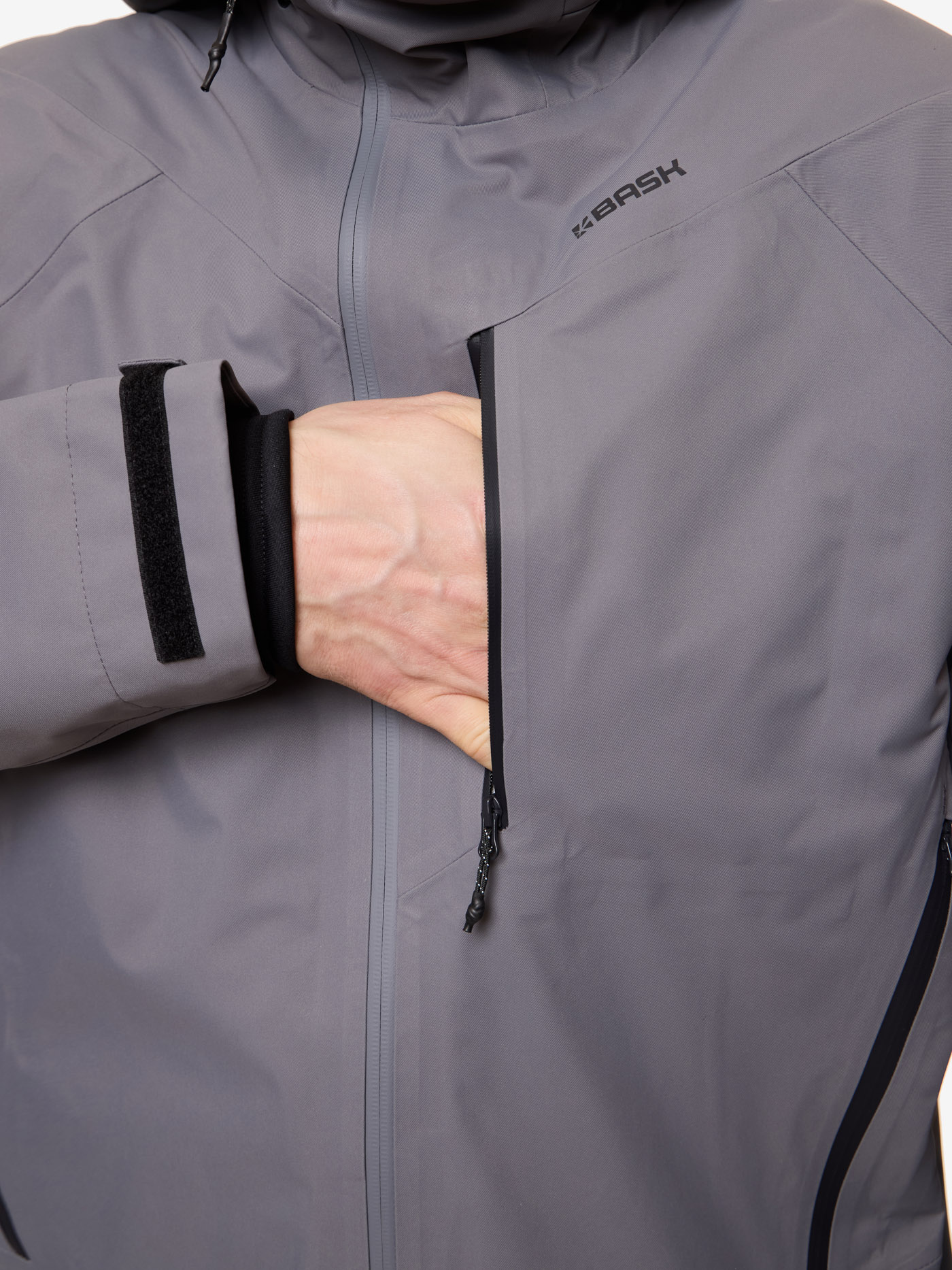 Мужская штормовая куртка для альпинизма, туризма и активного отдыха. Трехслойная мембранная ткань защитит от сильного ветра и продолжительных осадков. Эластичная ткань куртки устойчива к механическим повреждениям.Проверено профессиональными спасателями во время работы на Домбае, Кавказ.