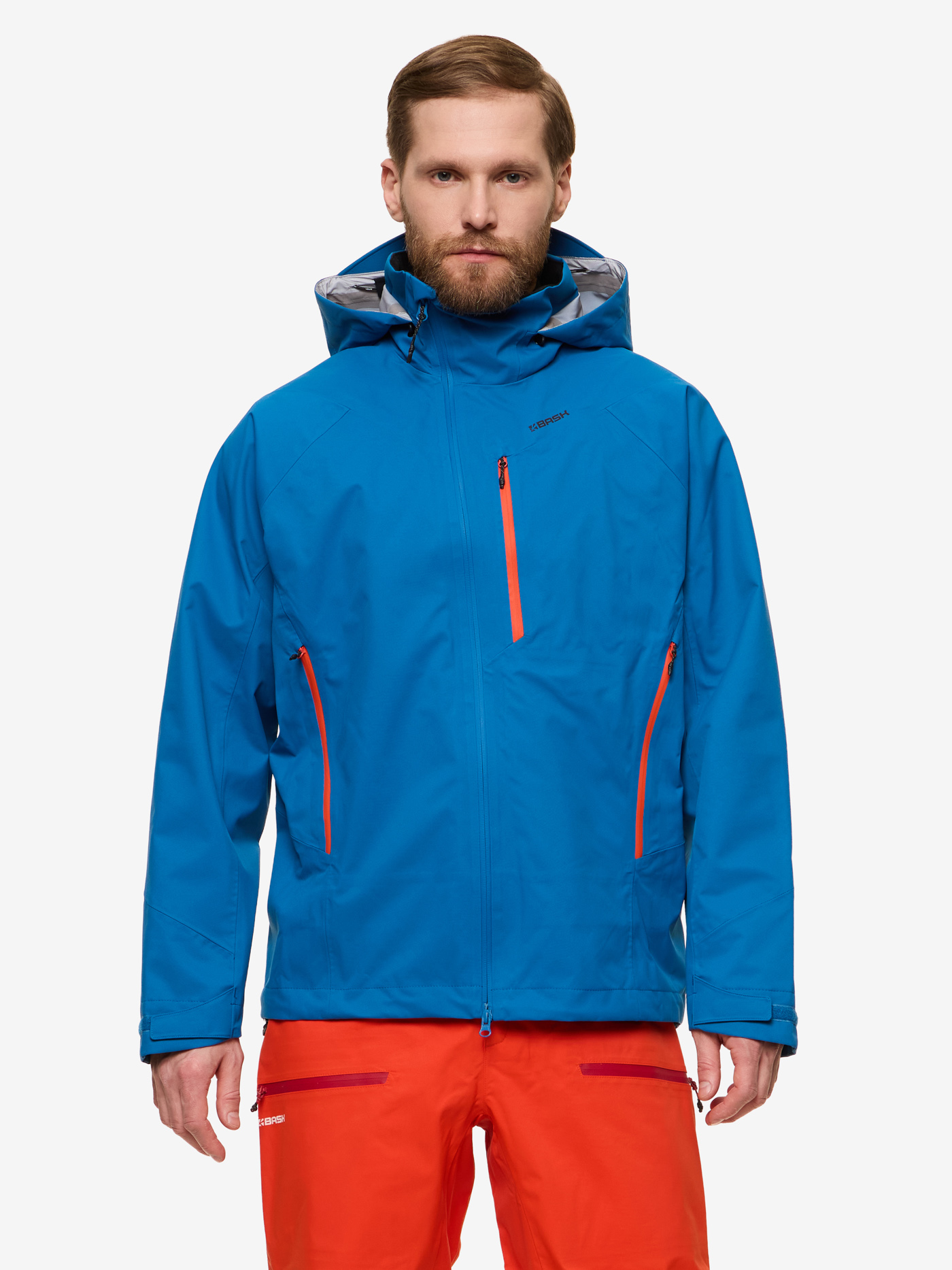 Мужская штормовая куртка для альпинизма, туризма и активного отдыха. Трехслойная мембранная ткань защитит от сильного ветра и продолжительных осадков. Эластичная ткань куртки устойчива к механическим повреждениям.Проверено профессиональными спасателями во время работы на Домбае, Кавказ.