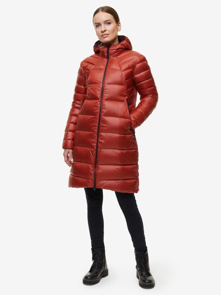 Практически невесомое и одновременно теплое пуховое пальто для женщин в стиле «элегантный спорт». Прямой крой, удлинённый «хвост», стилизация под реглан — отличительные черты модной верхней одежды. Пальто сделано из уникальной секционной ткани, исключающей миграцию пуха на одежду и делающей изделие прочным, водостойким и очень легким. Незаменимая вещь в городе.
