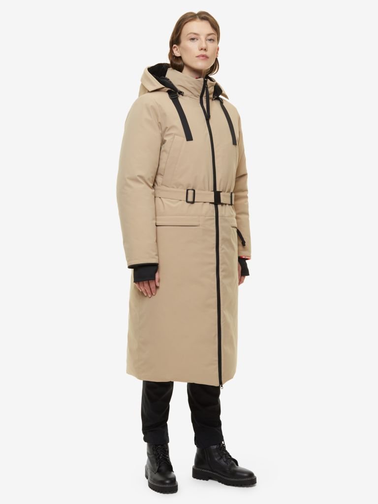 Теплое зимнее пальто с поясом и кокеткой. Благодаря мембранной верхней ткани пальто защищает от осадков и ветра. Натуральный пух бережно и без утяжеления сохраняет тепло в серьезные морозы.