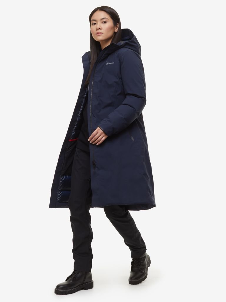 Технологичное, теплое и очень легкое пуховое пальто для женщин BASK FLAME. Пальто утеплено натуральным гусиным пухом высокого качества. Мембранная ткань верха защитит от ветра, дождя и мокрого снега, обеспечит комфортную паропроницаемость. Основные швы изделия проклеены, что увеличивает стойкость изделия к влаге. Подкладка выполнена из уникальной секционной ткани BASK® DownTube. Каждая секция наполнена пухом. Такая ткань исключает миграцию пуха через швы и обеспечивает особую легкость и прочность изделия. Красивое и практичное пальто для города и путешествий станет любимой вещью в осенне-зимнем гардеробе.