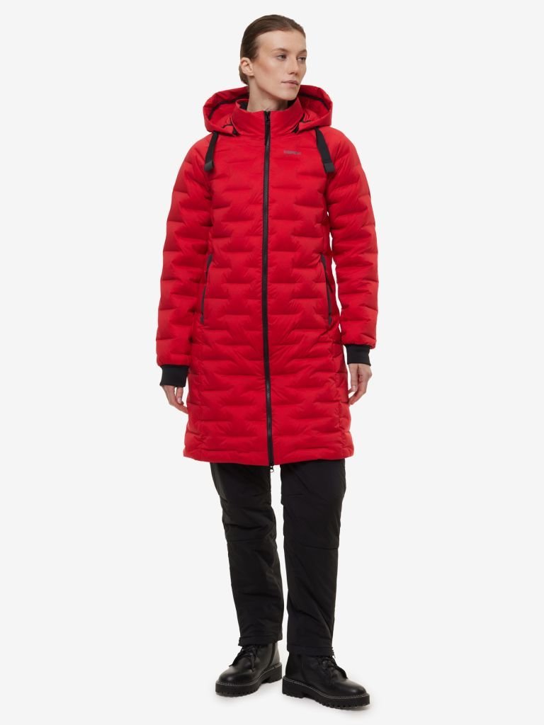 Теплое и легкое пуховое пальто для женщин в стиле «элегантный спорт». Особый комфорт движений обеспечивает эластичная секционная ткань. Пуховые секции соединены с помощью бесшовной технологии, которая исключает миграцию пуха, повышает водостойкость изделия и продлевает срок его службы. Пальто можно носить как в городе, так и в путешествиях.