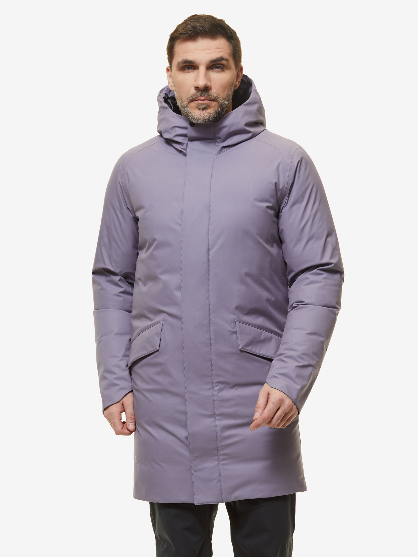 Легкое и теплое мужское пуховое пальто в классическом стиле для города. Сохранит комфорт не только в холодную, но и в промозглую погоду с осадками благодаря мембранной ткани. Подкладка из уникальной секционной ткани, исключающей миграцию пуха на одежду и делающую изделие прочным, водостойким и очень легким.