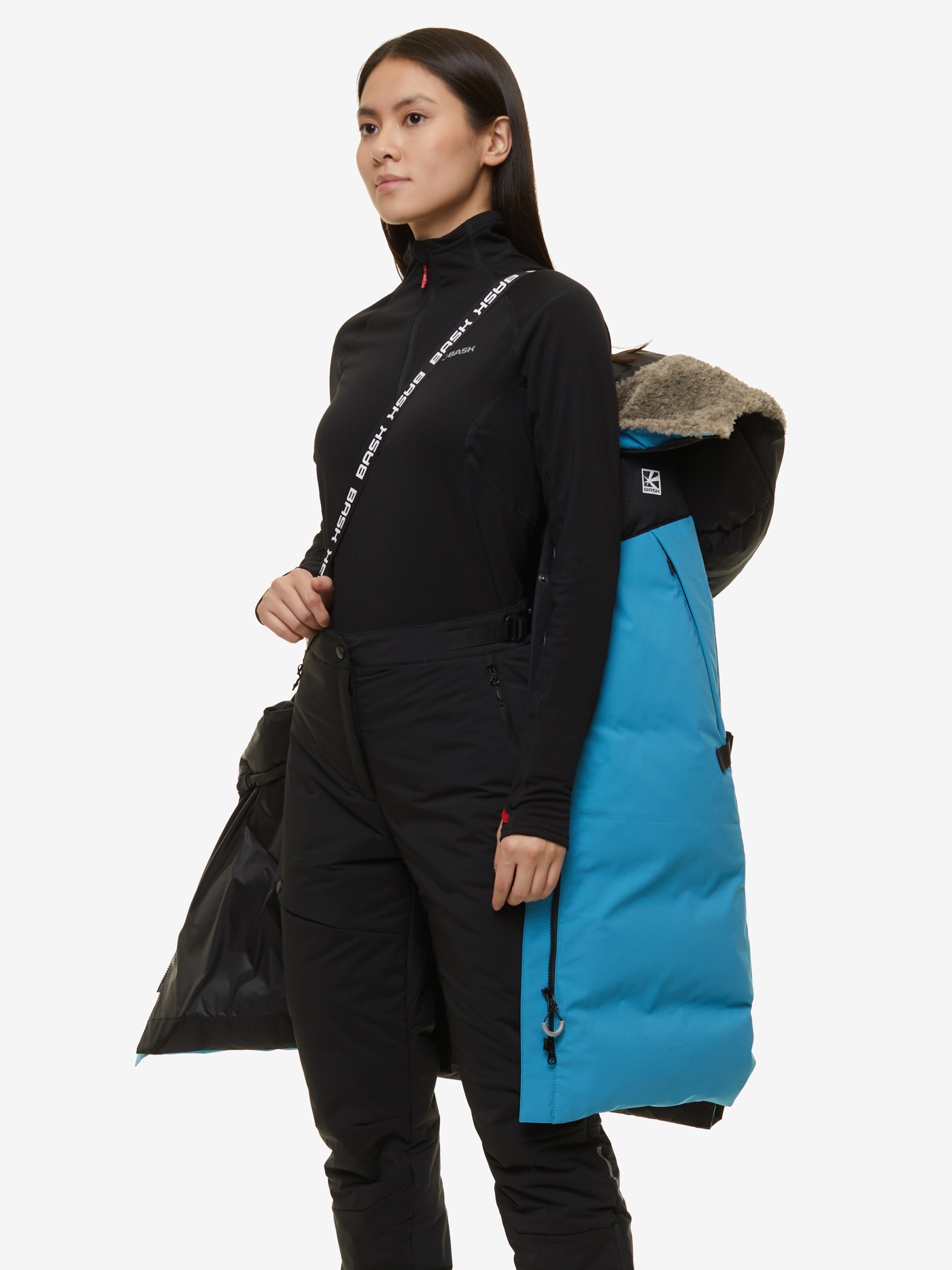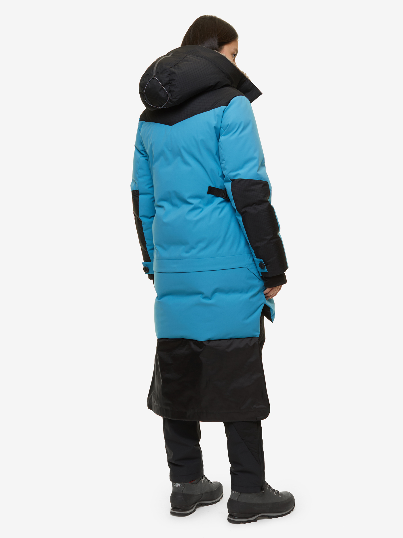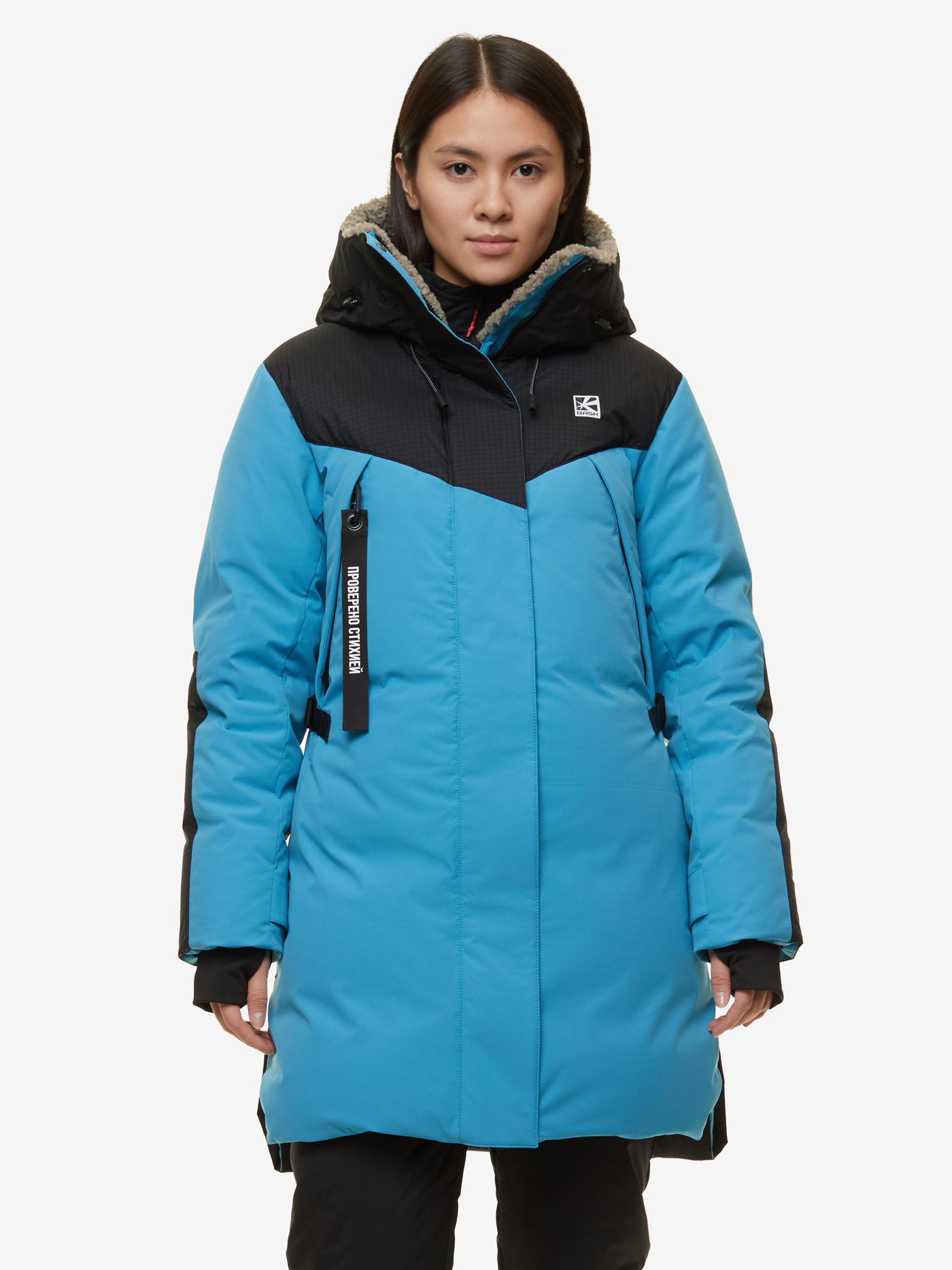 Удлиненная женская пуховка с оригинальным дизайном для активного отдыха, долгих путешествий, зимних outdoor-приключений и городской жизни. Комфортная куртка с изящным силуэтом для сильных морозов. Прочная, легкая мембранная ткань защищает от ветра, дождя и мокрого снега. Яркая и практичная вещь.