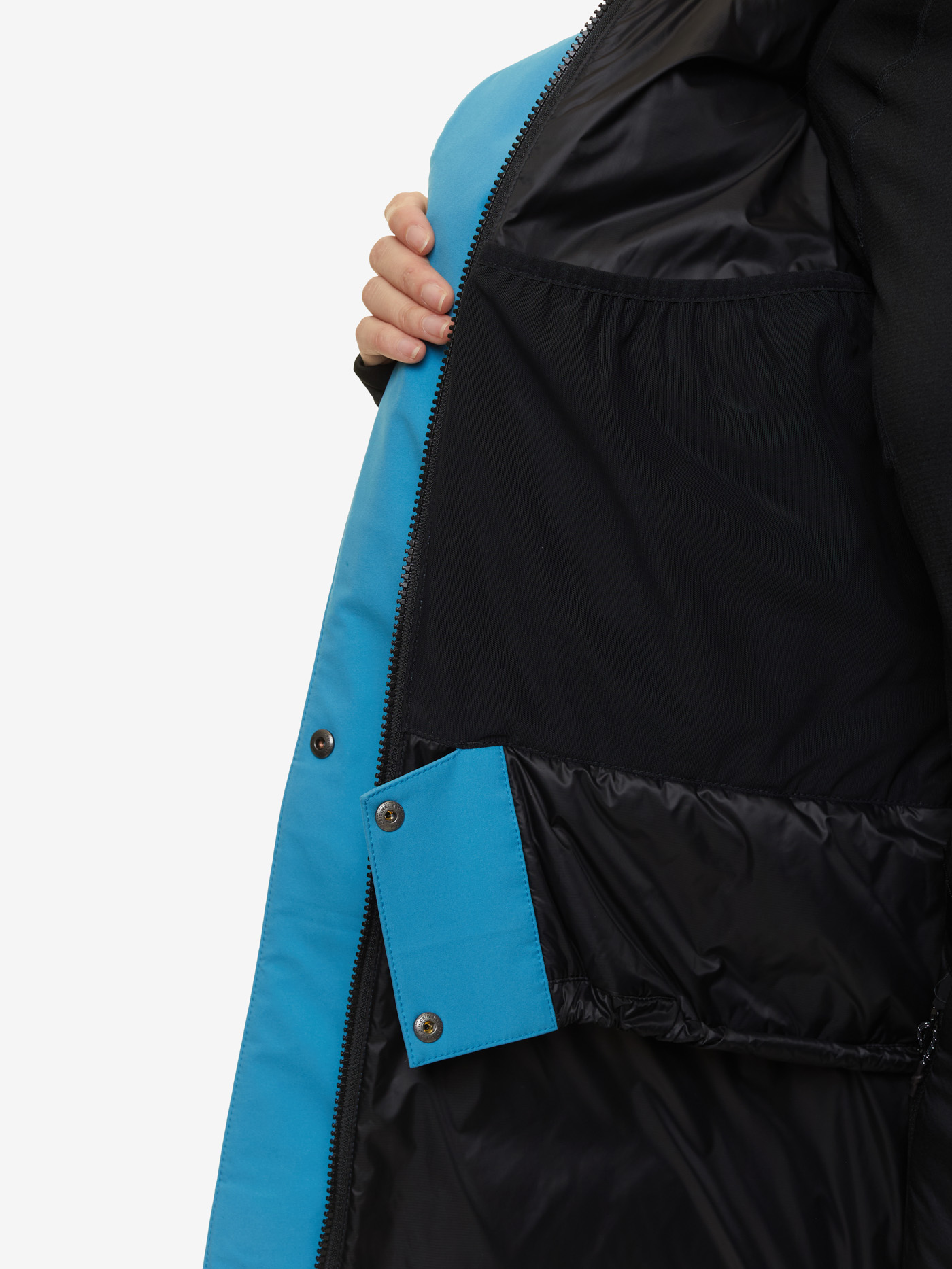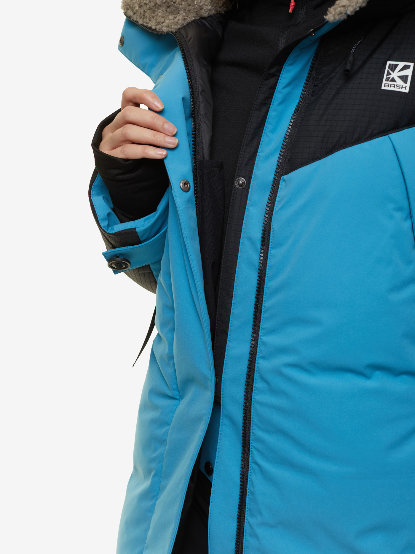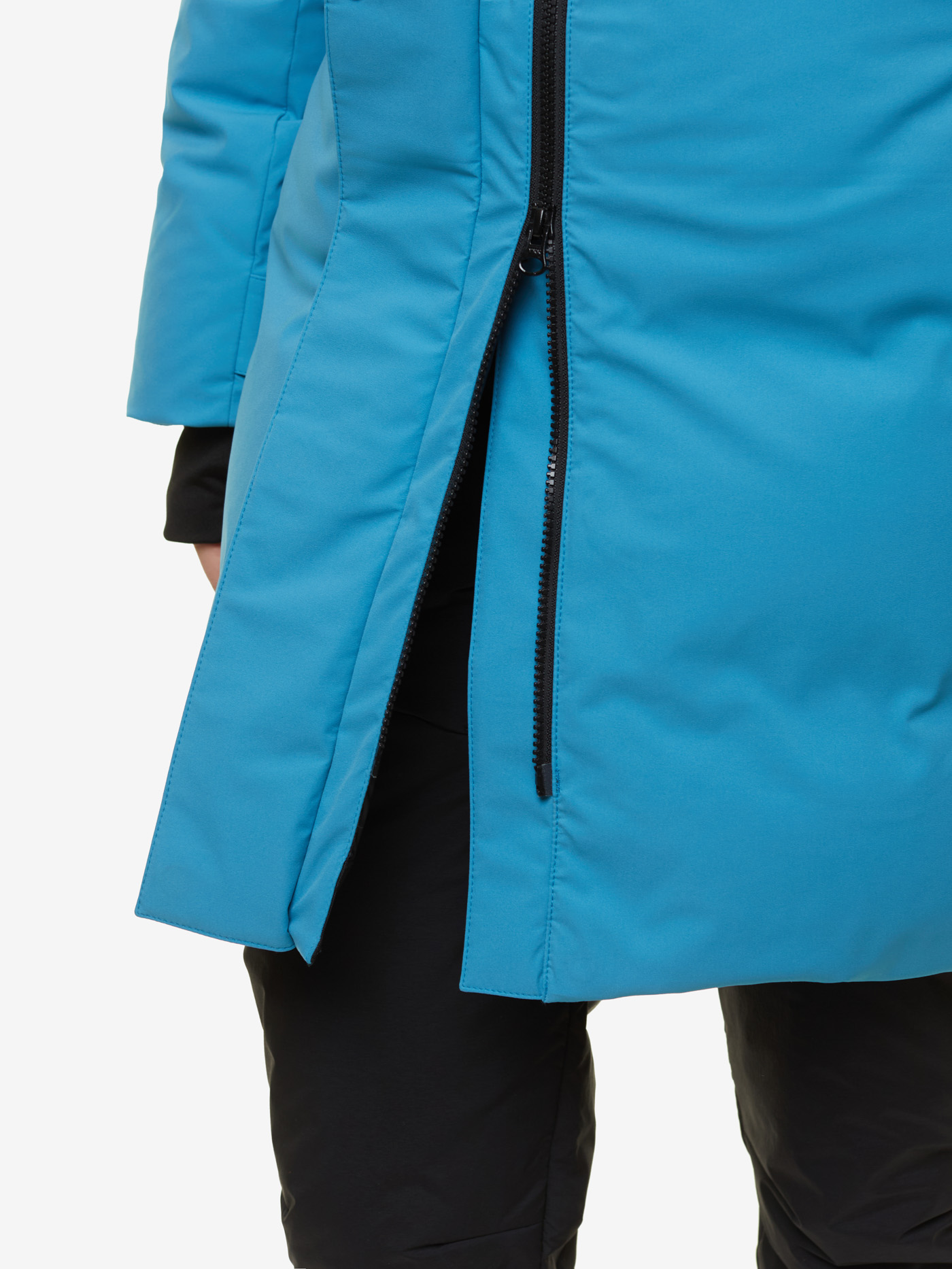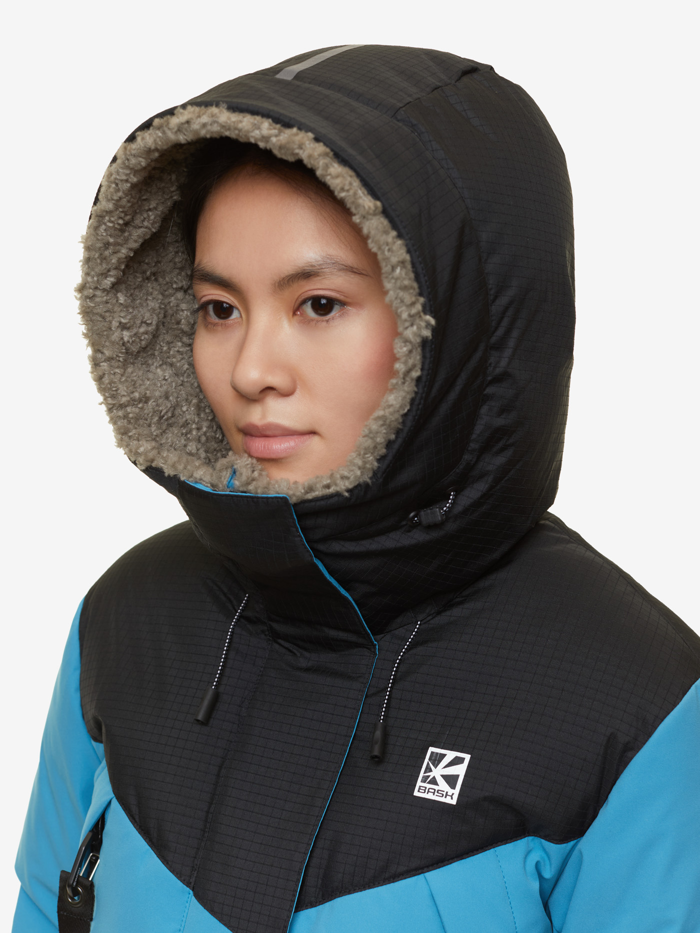 Удлиненная женская пуховка с оригинальным дизайном для активного отдыха, долгих путешествий, зимних outdoor-приключений и городской жизни. Комфортная куртка с изящным силуэтом для сильных морозов. Прочная, легкая мембранная ткань защищает от ветра, дождя и мокрого снега. Яркая и практичная вещь.