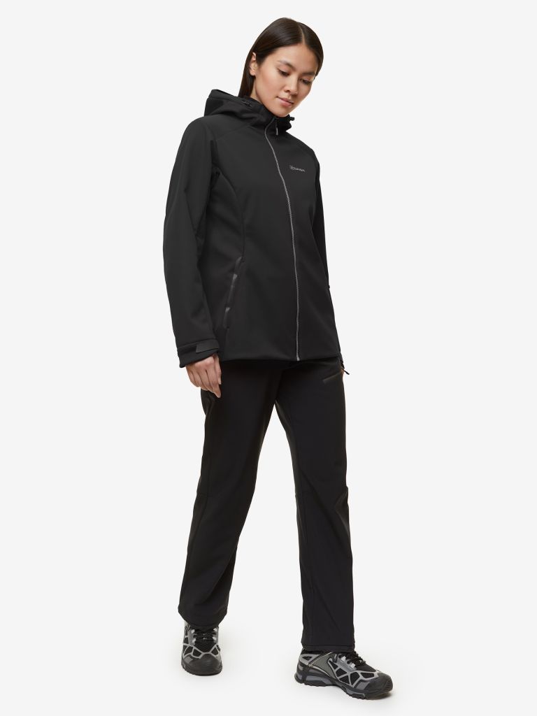 Женская куртка из мембранного софтшелл-материала средней плотности. Высокотехнологичная ткань обеспечивает защиту от ветра, небольших осадков, поддерживает отличную дышимость изделия. Эластичность и эргономичный крой сохраняют свободу активных движений. Куртка будет уместна как в городе, так и на природе – в туристических походах, путешествиях, на прогулках.