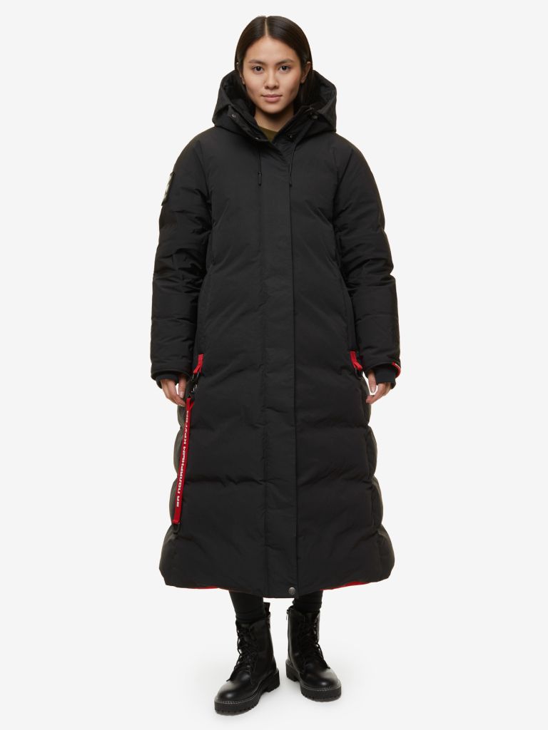 Пуховое женское пальто «в пол». Очень теплое и элегантное, создаст эффектный образ владелице. Будет дарить комфорт в морозные дни в городе. Прочная ткань верха не только прекрасно выглядит, но и надежно защищает от непогоды. Лаконичный дизайн разбавлен яркими съемными элементами брендирования.