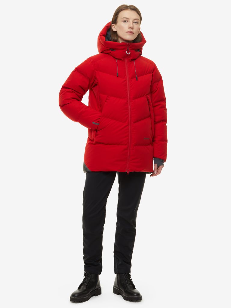 Удлиненная женская пуховка для альпинизма, туризма, активного отдыха, города. Максимальный комфорт и защита от непогоды при минимальном весе и объеме изделия. Легкая мембранная ткань прекрасно «работает» во влажных условиях, оберегая от ветра, мокрого снега и обеспечивая необходимую паропроницаемость, а высококачественный пух отлично сохраняет тепло, долго служит. Красивая вещь для любительниц спортивного образа жизни.