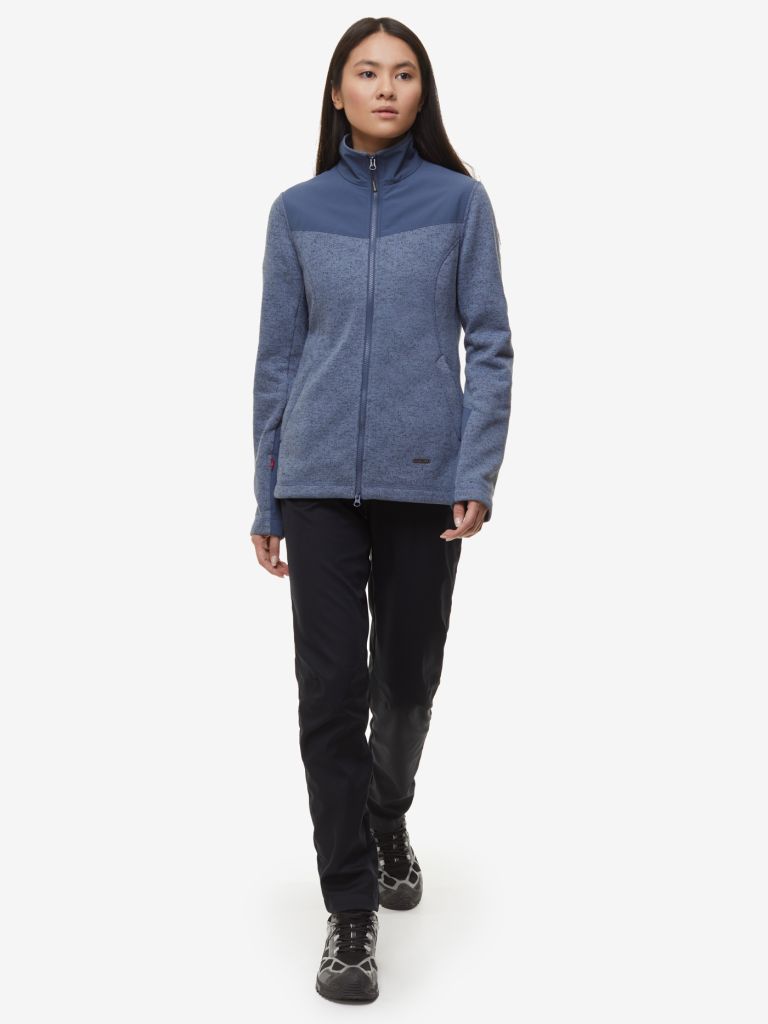 Женская куртка из флисовой ткани с вязанной текстурой в стиле casual. Теплая и комфортная в носке, может служить дополнительным утепляющим слоем одежды в холодное время года и быть самостоятельной верхней одеждой в другие сезоны.