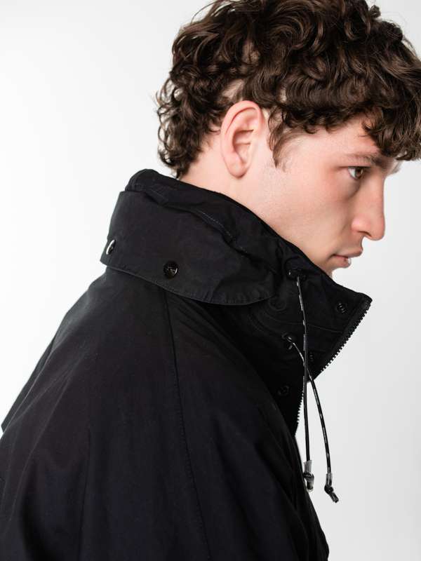 Регулируемая высокая горловина и встроенный капюшон — адаптация к любым погодным условиям