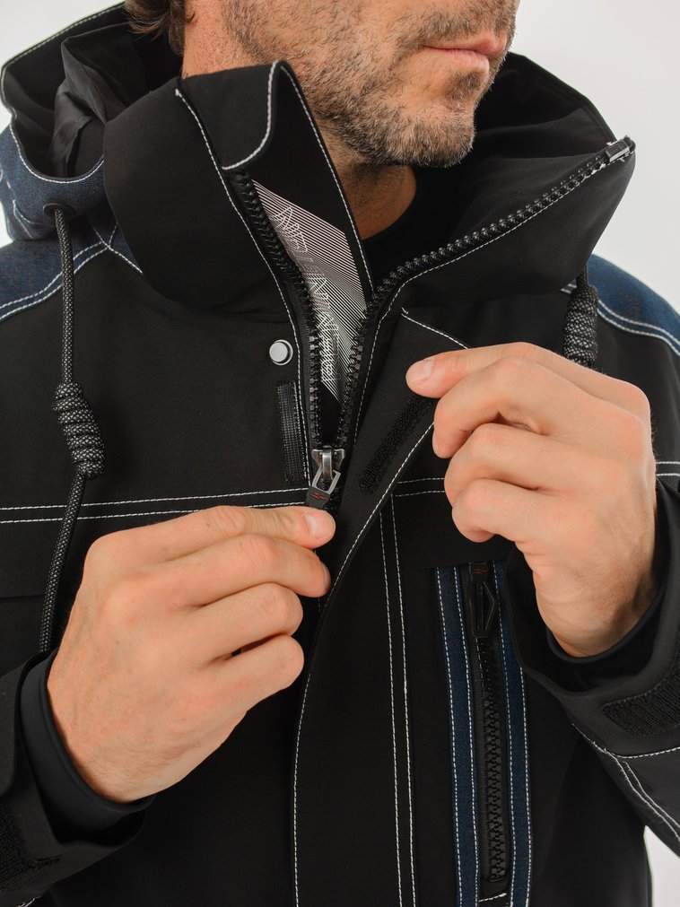 Двусторонняя молния с двумя ветрозащитными планками и защитным клапаном под подбородком — надёжная защита и удобство