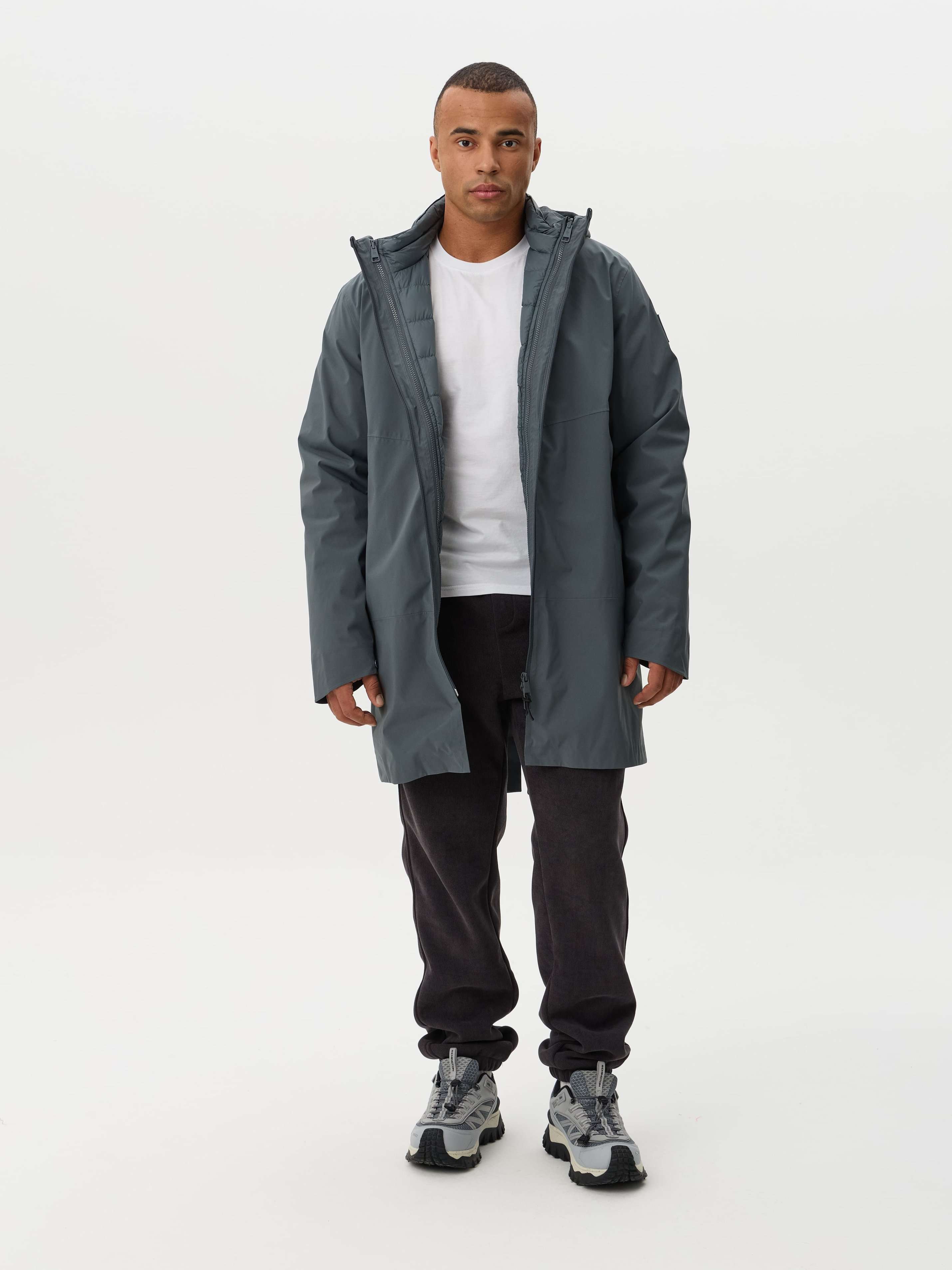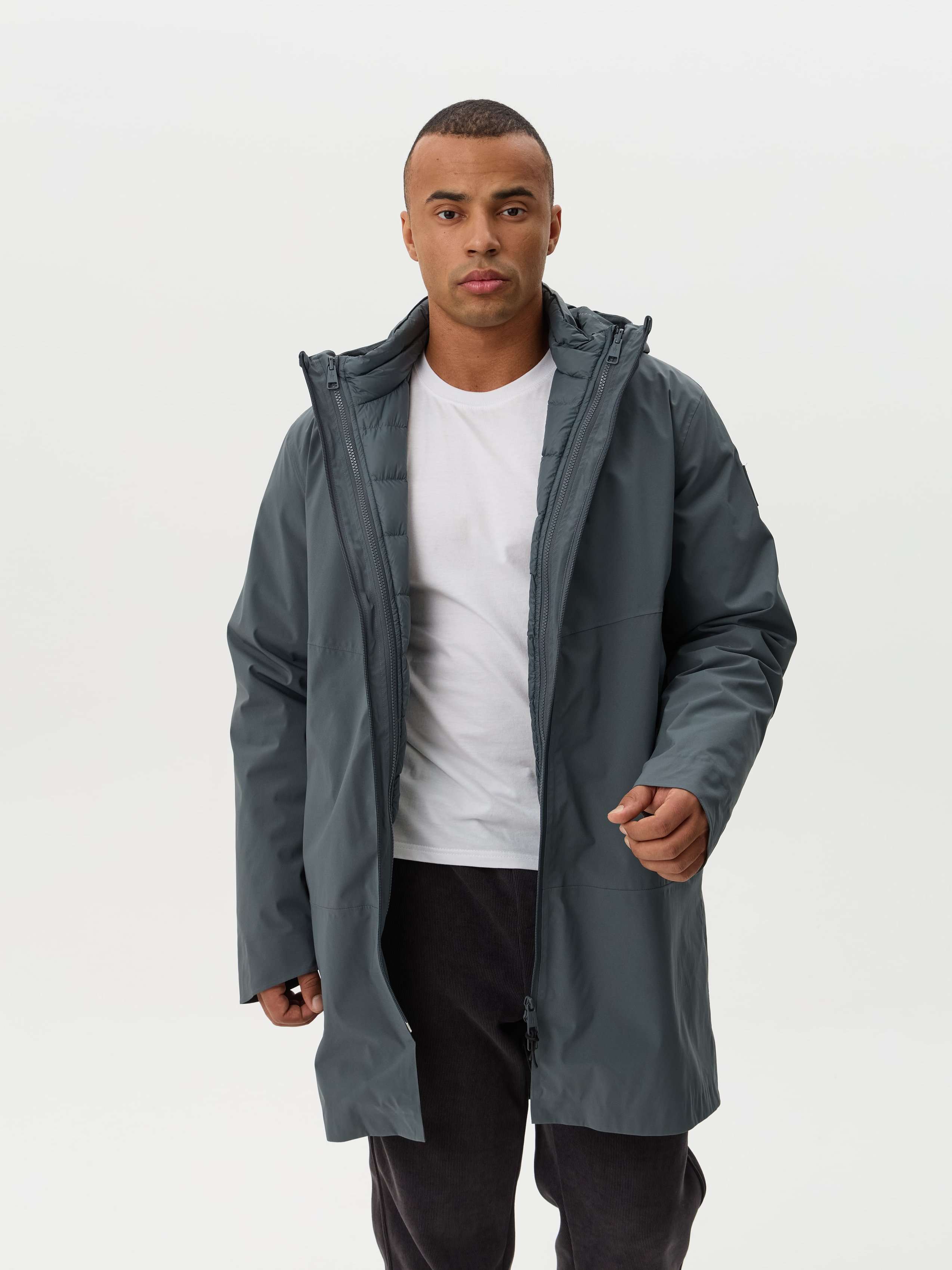 Мужское пальто Remington Interchange 3в1 — это многофункциональная верхняя одежда, сочетающая плащ, зимнюю куртку и лёгкую пуховую куртку (пуховик). Система «три в одном» легко адаптируется к переменчивой погоде: внутренняя пуховая куртка подойдёт на межсезонье, внешний мембранный плащ защищает от дождя и ветра, а вместе они превращаются в тёплую зимнюю куртку для холодной погоды.