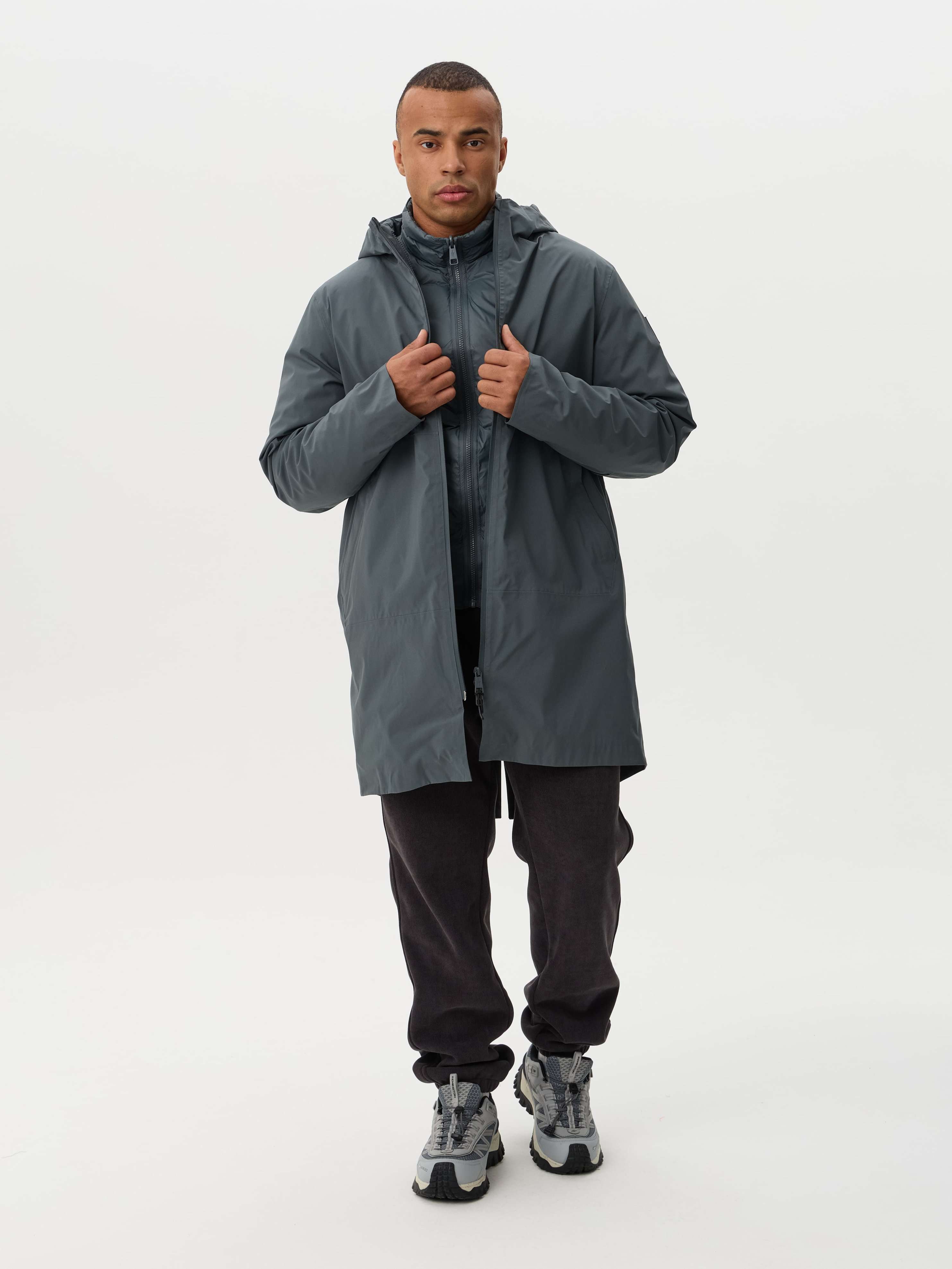 Система 3 в 1 — внешний мембранный плащ и внутренняя пуховая куртка, которые можно носить отдельно или вместе