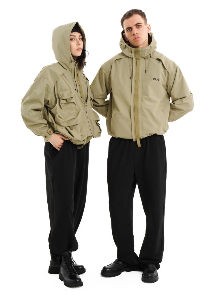 Экспериментальная куртка-трансформер со съёмной жилеткой-разгрузкой. Сделана из мембранной ткани с тактильным подкладом и оснащена капюшоном с утяжками. Пристёгиваете жилетку — и у вас появляется множество вместительных нагрудных карманов. Отстёгиваете — и у вас остаётся водостойкая городская куртка с редким лаконичным силуэтом.