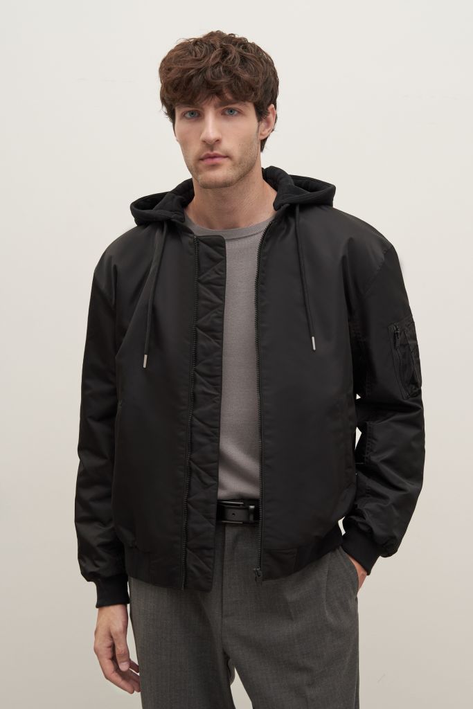 Утепленный бомбер с капюшоном