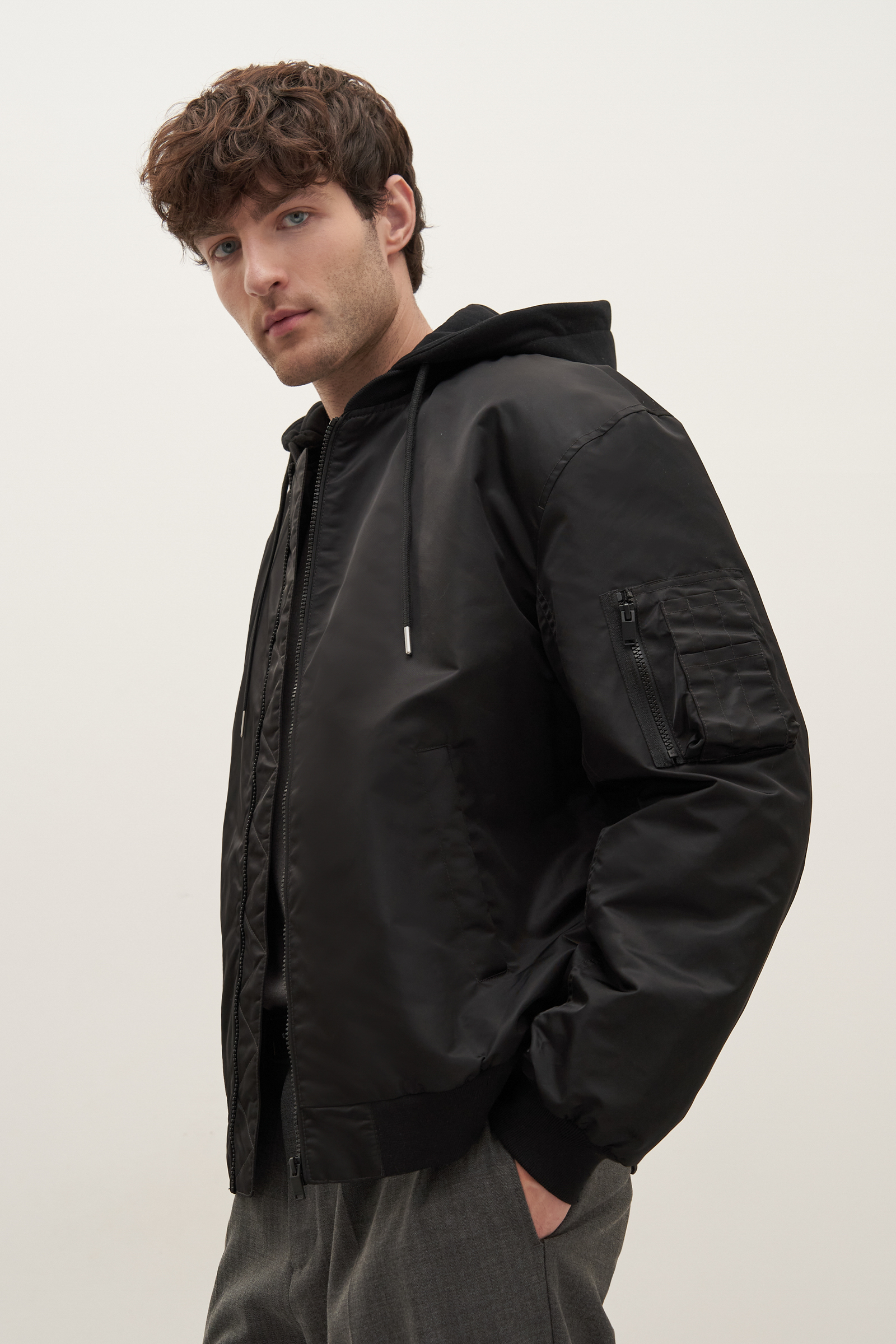 Утепленная куртка-бомбер с капюшоном