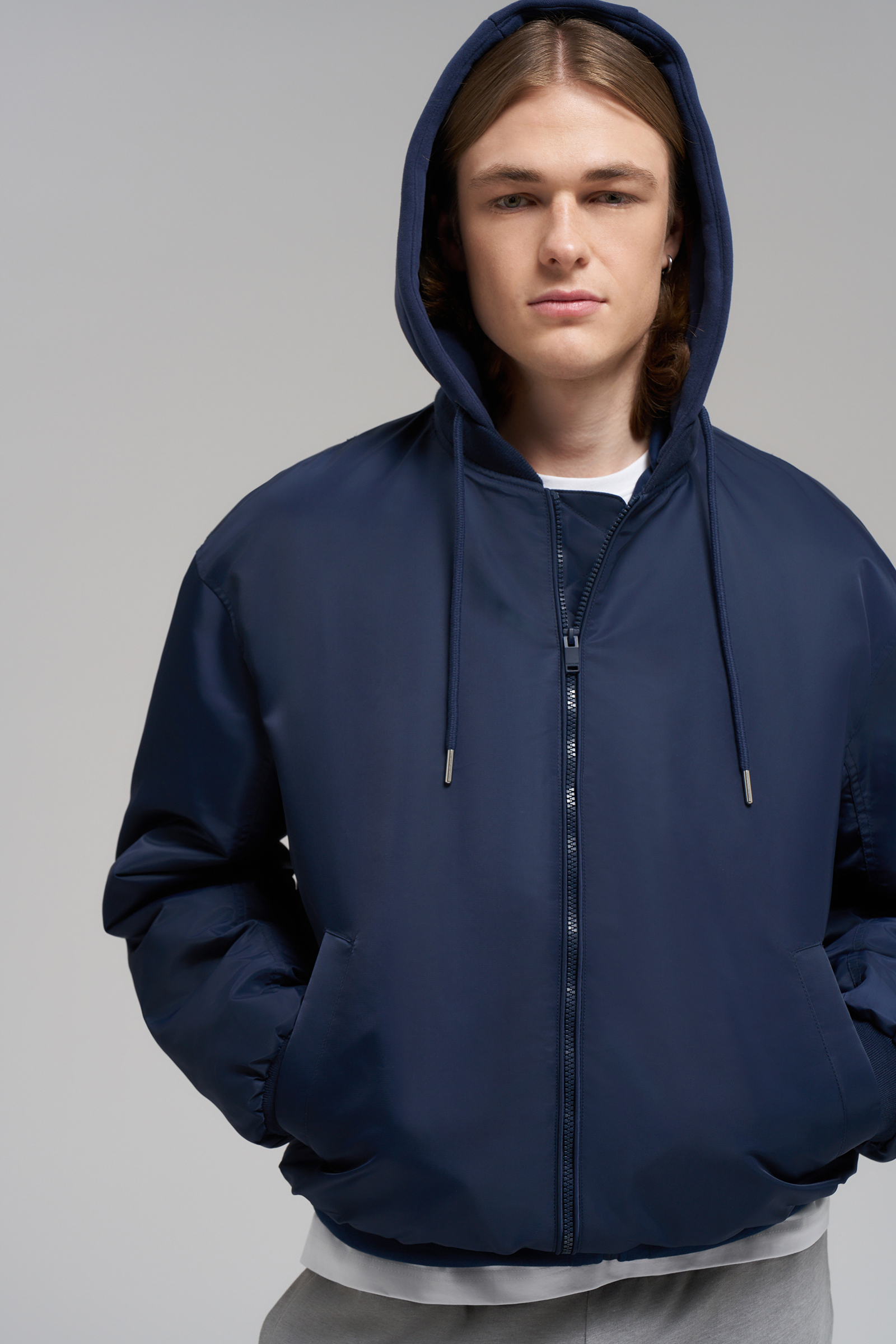 Утепленный бомбер с капюшоном и водоотталкивающей пропиткой