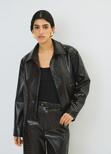 Куртка из искусственной кожи с тиснением под крокодила, Коричневый