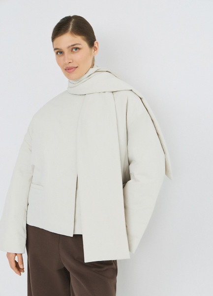 Утеплённая куртка с шарфом, Бежевый