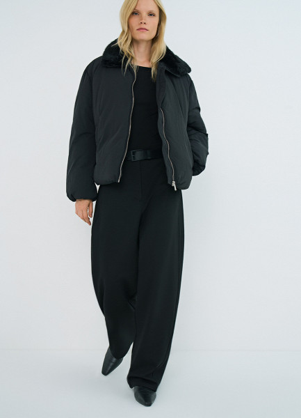 Стёганая куртка с меховым воротником, Черный