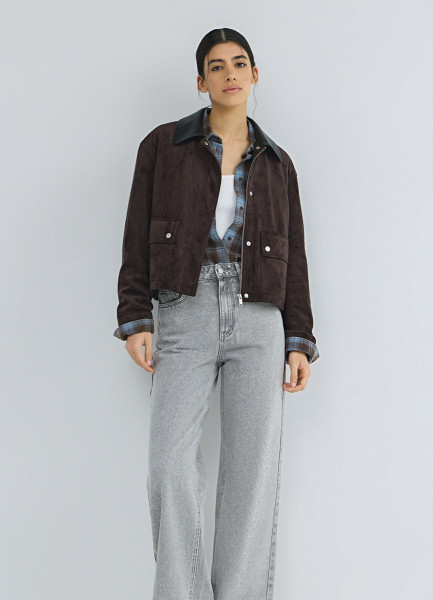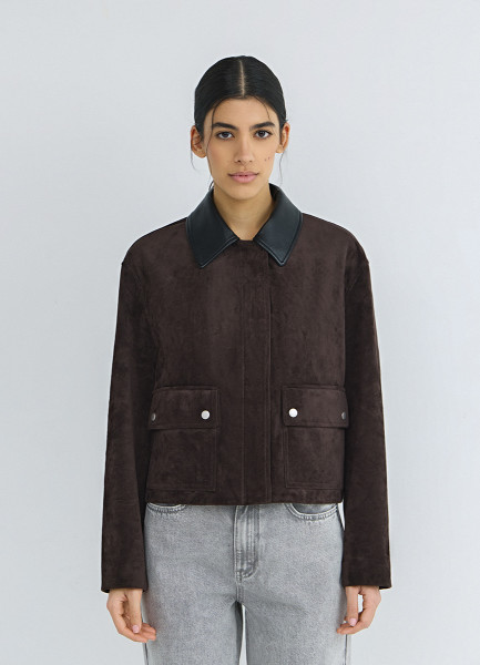 Бомбер из искусственной замши, Коричневый