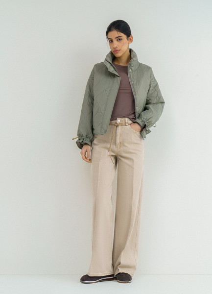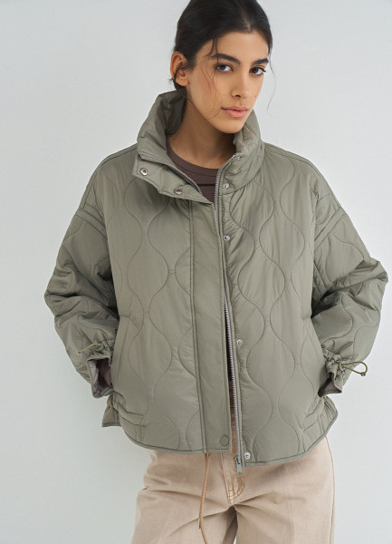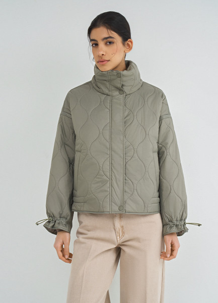 Стёганая утеплённая куртка с воротником-стойкой, Бежевый