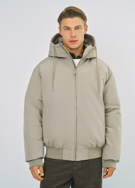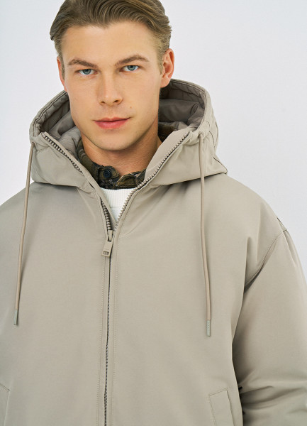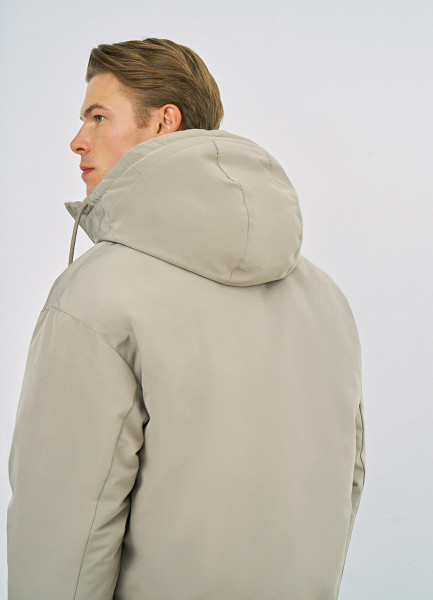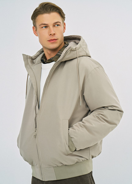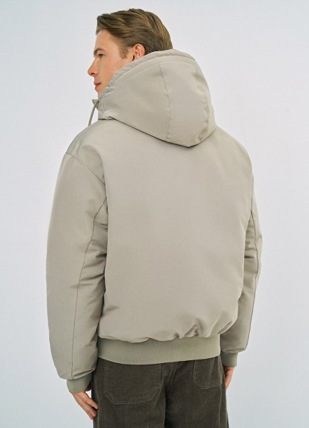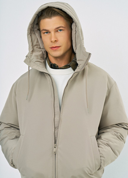 Утеплённая куртка с капюшоном из фактурной ткани, Серый