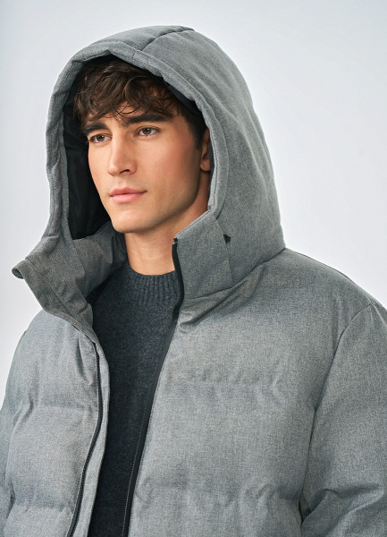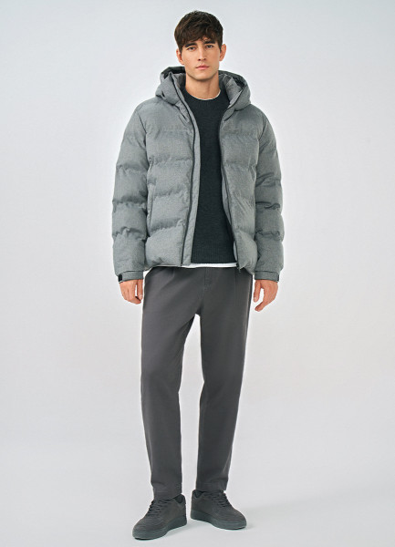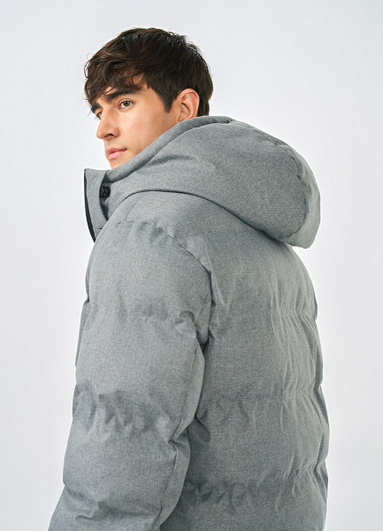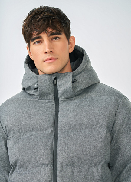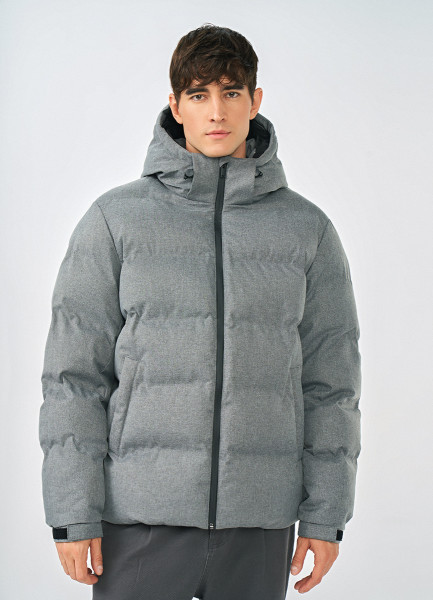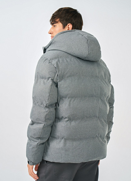 Утеплённая куртка с капюшоном из фактурной ткани, Серый