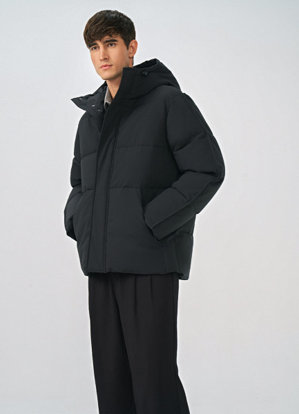 Утеплённая куртка с капюшоном и бесшовной стёжкой, Черный