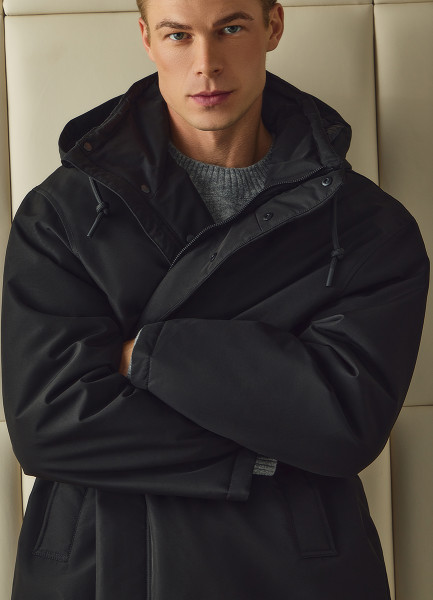 Удлинённая утеплённая куртка с капюшоном, Черный