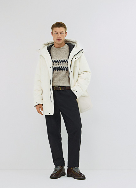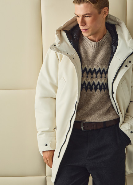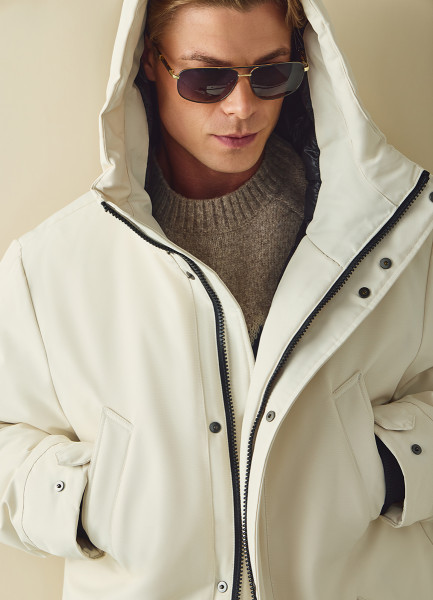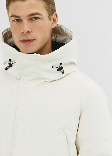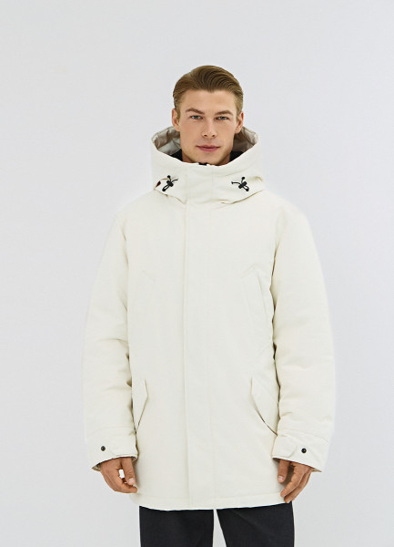 Удлинённая парка с капюшоном, Белый