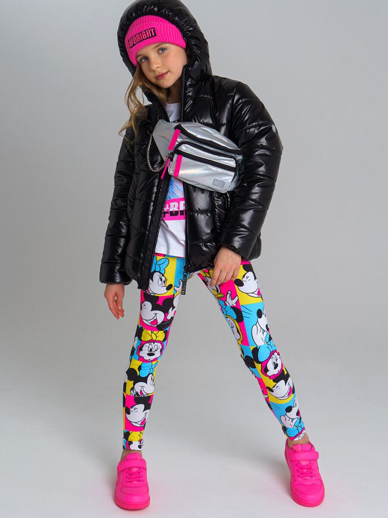 Леггинсы с принтом Disney из качественного приятного на ощупь трикотажа. Размер изделия на фото - 140, параметры модели (см): рост 141, обхват груди-талии-бедер: 61-56-70. Высокое содержание хлопка 95%. Благодаря наличию эластана в составе ткани, изделие проще в уходе и держит форму. Жаккардовая резинка по поясу.