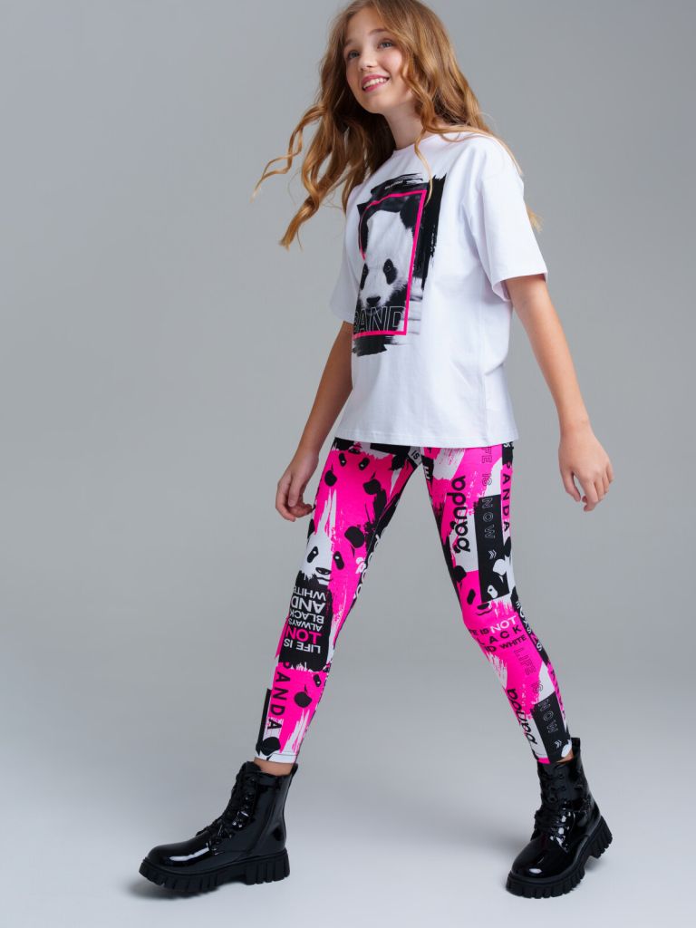 Легинсы из качественного эластичного трикотажа джерси. Высокое содержание хлопка 95%. Благодаря наличию эластана в составе ткани изделие держит форму и проще в уходе. Пояс-резинка.