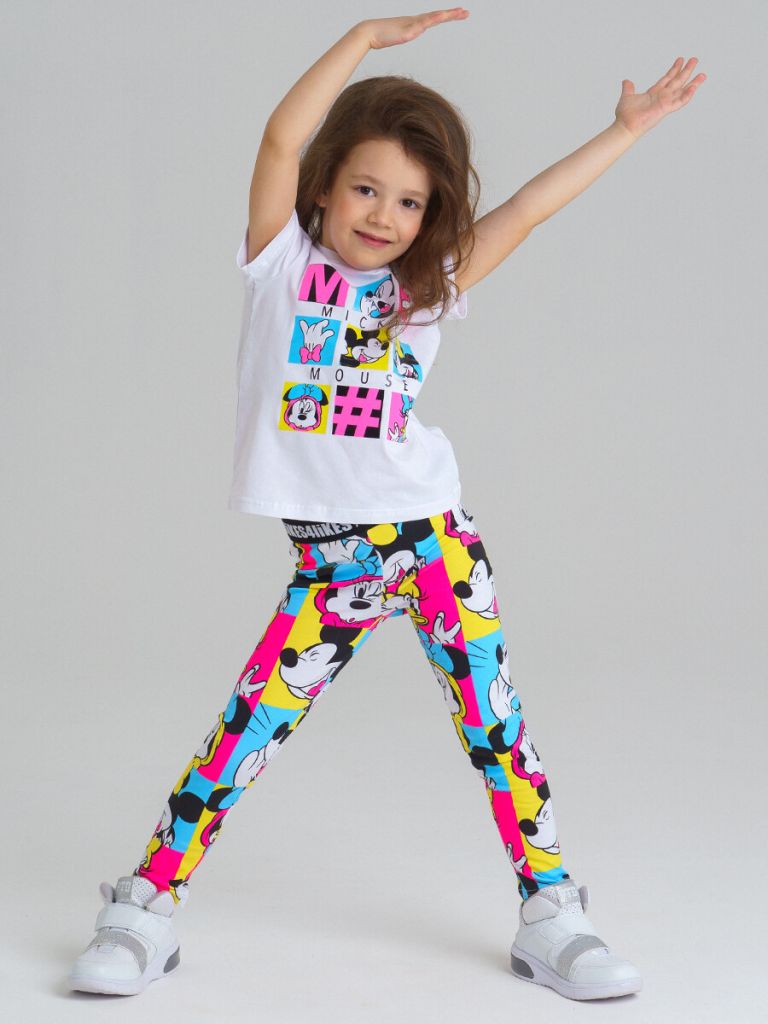 Леггинсы с принтом Disney. Размер изделия на фото - 110, параметры модели (см): рост 111, обхват груди-талии-бедер: 55-56-56. Высокое содержание хлопка 95%. Благодаря наличию эластана в составе ткани изделие держит форму и меньше мнется. Жаккардовая резинка по поясу.