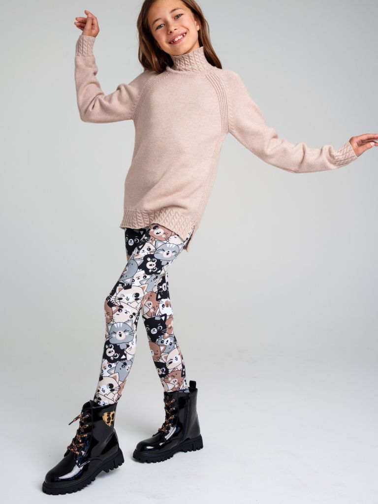 Леггинсы из качественного эластичного трикотажа джерси. Высокое содержание хлопка 95%. Благодаря наличию эластана в составе ткани изделие держит форму и проще в уходе. Пояс-резинка.
