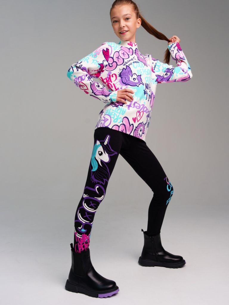 Леггинсы для девочки подростка. Модель из качественного и приятного на ощупь трикотажа джерси. Леггинсы с высоким содержанием хлопка 95%. Благодаря наличию эластана в составе ткани изделие проще в уходе и держит форму. Модель из капсульной коллекции UNICORN KUROMI (ЮНИКОРН КОРОМИ). Соберите полный образ в едином стиле!