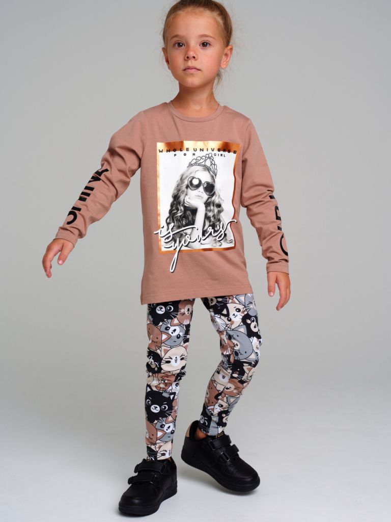 Леггинсы из качественного эластичного трикотажа джерси. Высокое содержание хлопка 95%. Благодаря наличию эластана в составе ткани изделие держит форму и проще в уходе. Пояс-резинка.