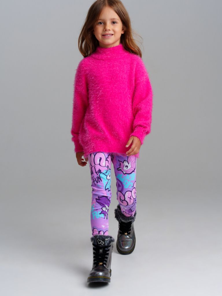 Леггинсы детские для девочки. Модель из качественного и приятного на ощупь трикотажа джерси. Леггинсы с высоким содержанием хлопка 95%. Благодаря наличию эластана в составе ткани изделие проще в уходе и держит форму. Модель из капсульной коллекции UNICORN KUROMI (ЮНИКОРН КОРОМИ). Соберите полный образ в едином стиле!