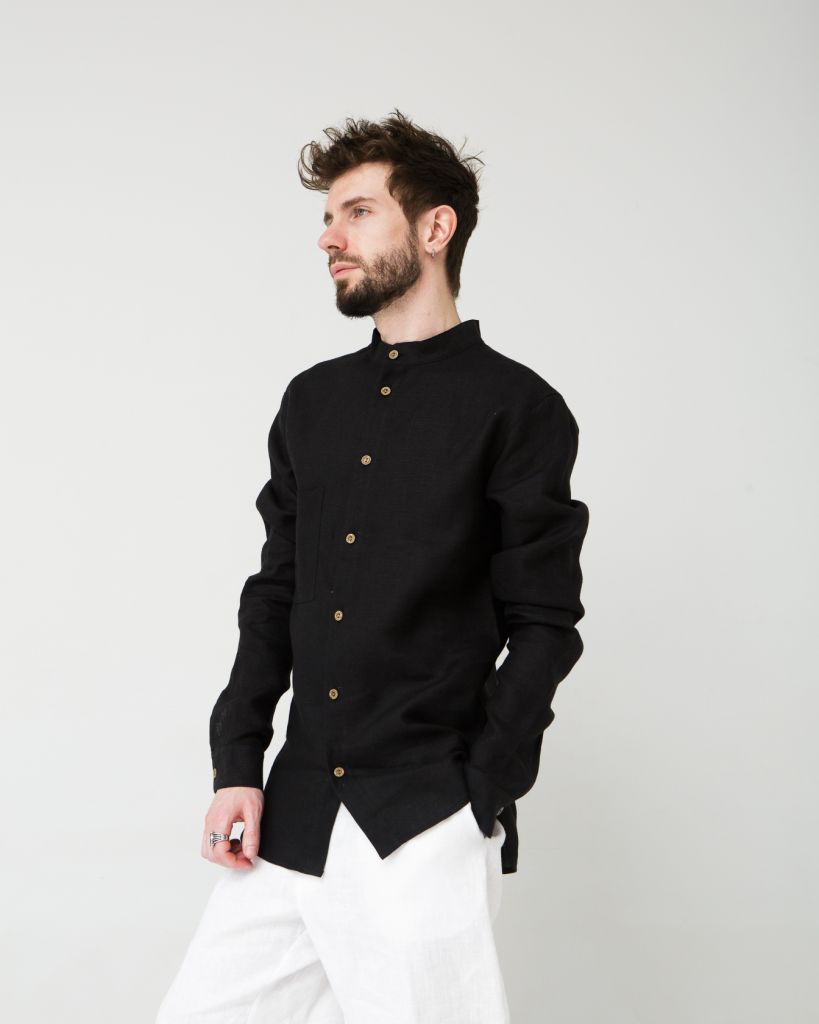 Черная льняная рубашка — это стильный компромисс между городской элегантностью и природной свежестью. Сшитая из высококачественного льна, она обладает уникальной способностью регулировать температуру — дарит прохладу в зной и сохраняет комфорт в прохладные вечера. Характерная текстура льняного полотна добавляет образу благородную фактурность, а глубокий черный цвет придает универсальность.Свободный крой с отложным воротником создает непринужденный силуэт, который одинаково хорошо смотрится заправленным в брюки и навыпуск. Эта рубашка легко трансформируется из офисного варианта с классическими брюками в вечерний образ с темными джинсами или даже в пляжный лук с белыми шортами. Длинные рукава с отворотами позволяют варьировать степень формальности.Экологичный лен — выбор современных ценителей устойчивой моды. Материал становится мягче с каждой стиркой, приобретая индивидуальный характер. Выберите эту рубашку — она станет вашим универсальным спутником, который одинаково уместен на деловой встрече и вечернем ужине у моря. XS