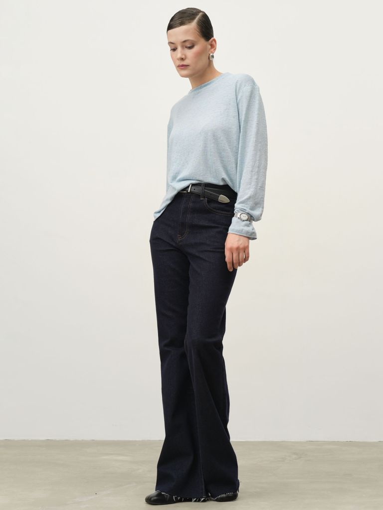 Голубой лонгслив из льна – легкость и комфорт в каждой детали. Натуральный материал дарит воздухопроницаемость и приятные тактильные ощущения, а свободный крой обеспечивает удобную посадку. Нежный оттенок добавляет образу свежести и универсальности.Этот лонгслив станет идеальной основой для повседневных и расслабленных образов. Он легко сочетается с джинсами, брюками или юбками, создавая стильные и комфортные комбинации для любого сезона.